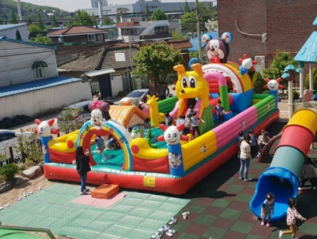 신나는 에어바운스에서 마음껏 뛰어놀 수 있어