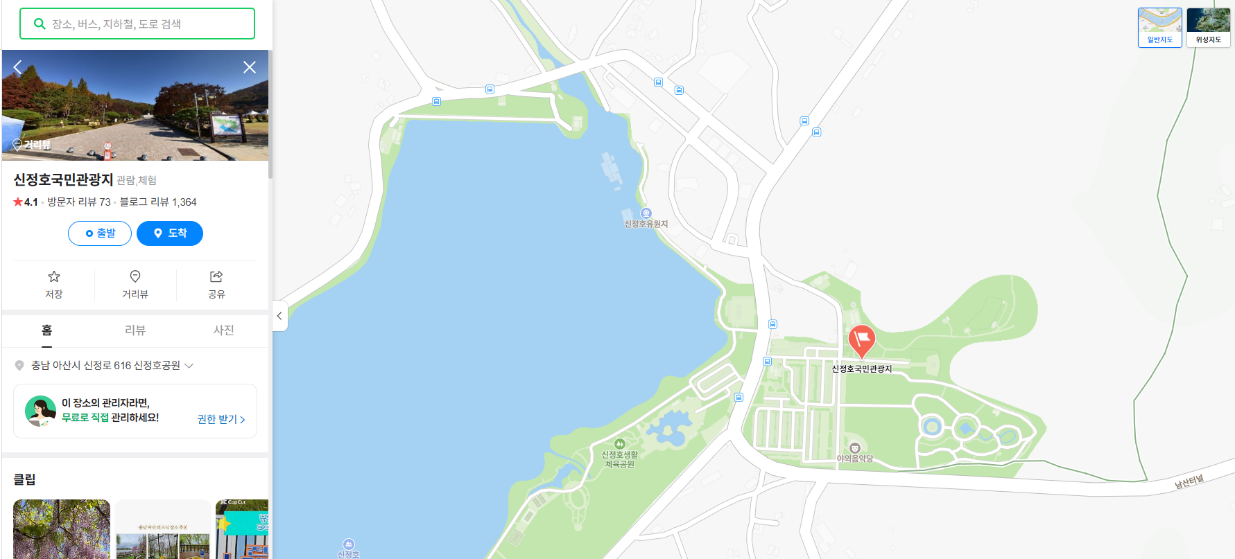 - 신정호 관광지 주차장 (내비게이션 실행)