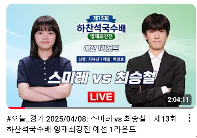 ▶️ 스미레 vs 최승철 예선 1라운드 경기 영상 (바둑TV)